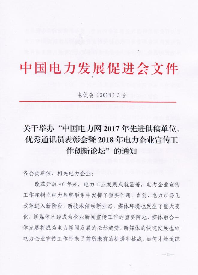 中國(guó)電力網(wǎng)2017年先進(jìn)供稿單位、優(yōu)秀通訊員表彰會(huì)暨2018年度電力企業(yè)宣傳工作創(chuàng)新論壇