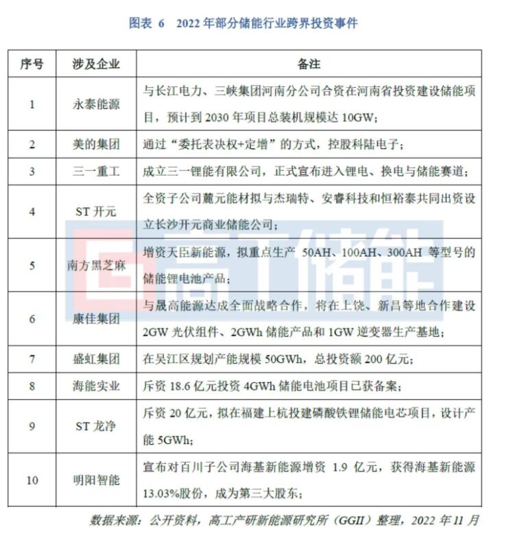 此外,據(jù)不完全統(tǒng)計,2022年跨界儲能上市公司包括永泰能源、美的集團(tuán)、三一重工、ST開元、海能實(shí)業(yè)、ST龍凈、明陽智能等。