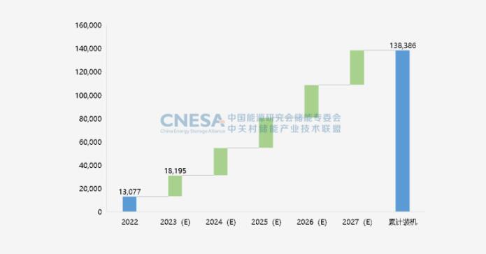 圖6:未來5年中國新型儲(chǔ)能累計(jì)投運(yùn)裝機(jī)規(guī)模預(yù)測(cè)(2023-2027年) 單位:MW