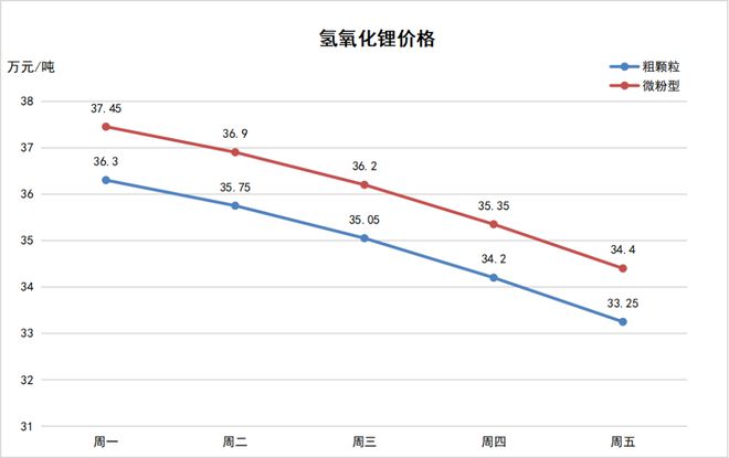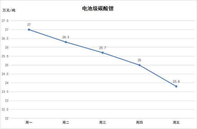 上周,3月27日-3月31日,鋰價(jià)繼續(xù)下跌。其中,電池級(jí)碳酸鋰價(jià)格下探至23.8萬元/噸,氫氧化鋰價(jià)格低至33.25萬元/噸,六氟磷酸鋰低至10.15萬元/噸。