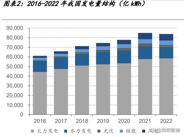 測算邏輯:根據(jù)國家發(fā)改委下設全球能源互聯(lián)網(wǎng)發(fā)展合作組織 2021 年 3 月發(fā)布 的《中國 2060 年前碳中和研究報告》數(shù)據(jù),預計到 2030 年全社會總用電量將達 到 11 萬億千瓦時,光伏、風電、水電總裝機將分別達到 10/8/4.4 億 kW,假設 光伏、風電、水電的年利用小時數(shù)分別為 1400/2000/3800 小時,預計光伏、風 電、水電、火電在發(fā)電結構中占比將分別達到 27%/22%/12%/36%。
