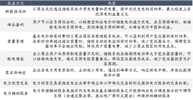 同時,工商業(yè)儲能電站收益方式相對多樣,具有保障分布式能源消納、峰谷套利、需量管理、配電增容、需求側響應、參與電力現(xiàn)貨市場交易、參與電力輔助服務等多種現(xiàn)存與潛在受益方式。