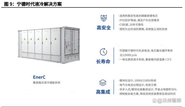 各大主流集成廠商近年來均推出了液冷產(chǎn)品,在能量密度、電池壽命上較風(fēng) 冷產(chǎn)品有了顯著提升。陽光電源的 PowerTitan 產(chǎn)品采用液冷溫控的方式,實(shí) 現(xiàn)了所有電芯溫差小于 2.5℃,使電池壽命延長 2 年以上。海博思創(chuàng)的HyperA2-C3354、HyperA2-C6709 產(chǎn)品采用了同程均衡液冷管路設(shè)計(jì),實(shí)現(xiàn)了 溫差不超過 3℃,電池壽命延長 20%。比亞迪的 Cube T28 產(chǎn)品采用了液冷技術(shù), 空間利用率遠(yuǎn)遠(yuǎn)高于傳統(tǒng)預(yù)留風(fēng)道的風(fēng)冷系統(tǒng)。寧德時代的 EnerC 產(chǎn)品,能量 密度較傳統(tǒng)風(fēng)冷系統(tǒng)提高了近兩倍,可將單簇 416 個電芯溫差控制在 3°C 以內(nèi), 全系統(tǒng) 4160 個電芯溫差控制在 5°C 以內(nèi)。