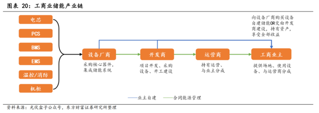 根據(jù)工商業(yè)儲(chǔ)能運(yùn)營模式的不同,可以分為自建和合同能源管理模式。據(jù)東方財(cái)富證券: