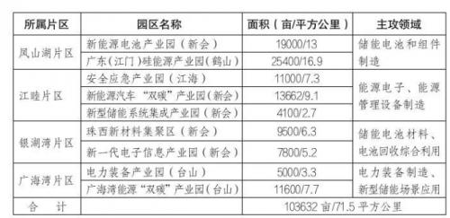 表2江門市新型儲能產(chǎn)業(yè)布局范圍面積