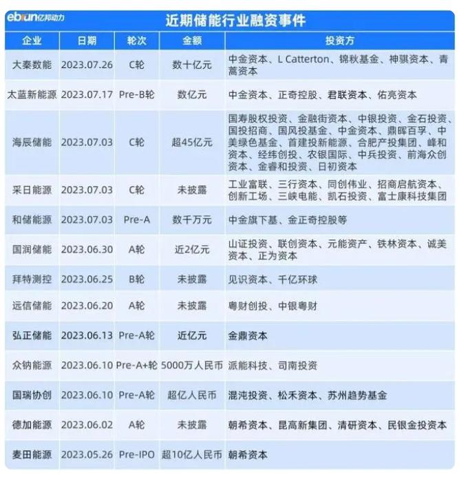 今年以來,多起儲能企業(yè)融資事件的金額都在億元以上。專注于雙碳賽道的投資基金及聚焦清潔能源的風投機構,紛紛加大對儲能行業(yè)的投資力度。例如7月5日,海辰儲能完成45億元C輪融資;4月17日,融科儲能完成超10億元B+輪融資;3月28日,精控能源完成數(shù)億元C輪融資;3月18日,緯景儲能完成超6億元A輪融資等。