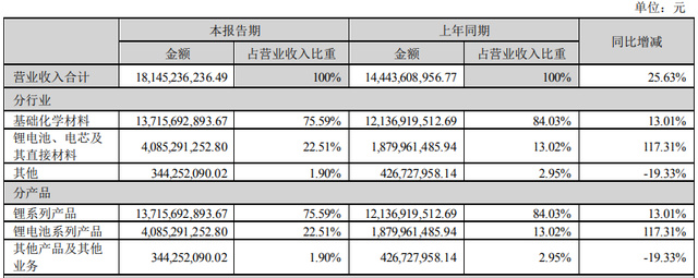 今年上半年,贛鋒鋰業(yè)的鋰電池系列產(chǎn)品營業(yè)收入達到40.85億元,同比增長117.31%,占比首度突破20%達到22.5%,毛利率更是增長了4.14個百分點到19.41%,成為贛鋒鋰業(yè)唯一實現(xiàn)毛利率正增長的業(yè)務(wù)。