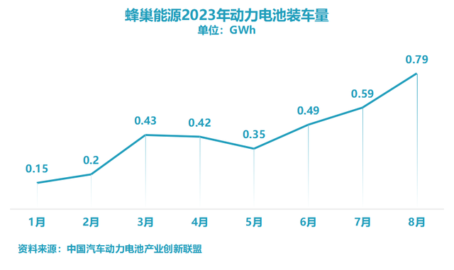 好在,6月開始,蜂巢能源重拾升勢,一個月一臺階。8月,蜂巢能源裝車量0.79GWh,排名國內(nèi)第六。1-8月,蜂巢能源總裝車3.42GWh,已經(jīng)追平2022年,排名國內(nèi)第八。