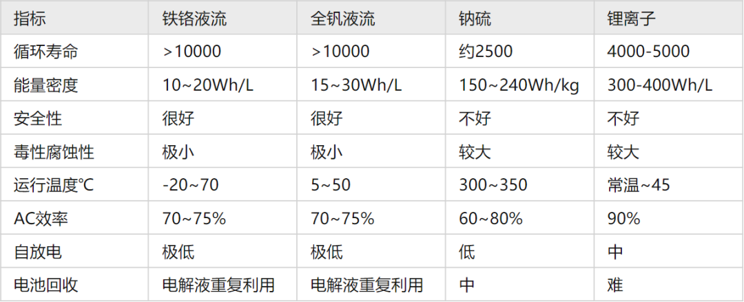 圖說:液流電池(鐵鉻、全釩)與其他電化學(xué)電池技術(shù)對(duì)比 來源:知乎
