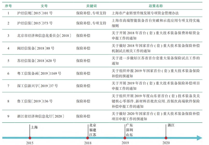 代表性的地方層面首臺(套)政策及其時間軸