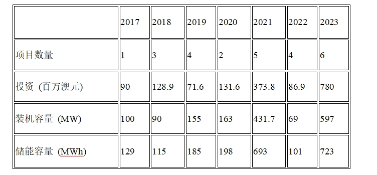 澳大利亞清潔能源委員會報告中的一個表格表明,就調(diào)試和投資金額而言,2023年將成為迄今為止大型電池儲能系統(tǒng)投資規(guī)模最大的一年: