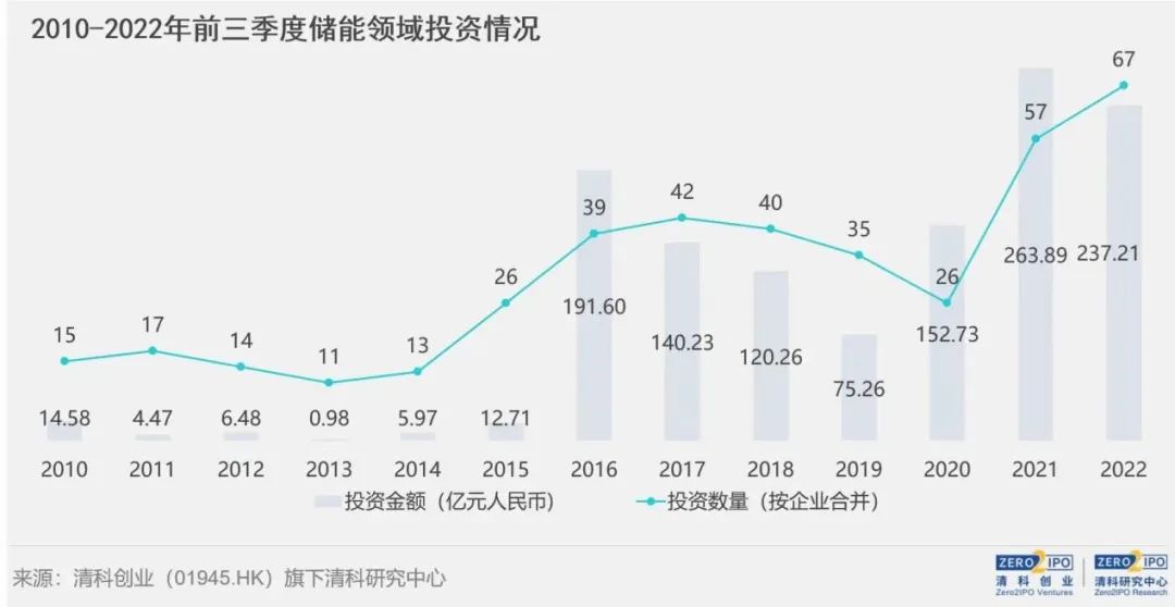 而在投資方面,截至2022年9月,中國股權(quán)投資市場對儲能領(lǐng)域項(xiàng)目投資累計(jì)近400起,涉及投資金額約1,300億元。不難發(fā)現(xiàn),儲能領(lǐng)域項(xiàng)目投資在時(shí)間分布上的走勢,與基金募集情況十分相似,也呈現(xiàn)階梯式上升特征。