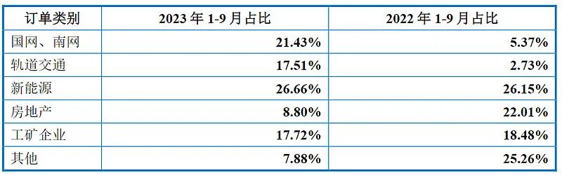截至2023年9月末,公司在手訂單達(dá)到6.81億元,公司在手訂單充足。下圖可以看出,公司來(lái)自新能源和國(guó)網(wǎng)等大型客戶的訂單占比明顯提高。2023年公司市場(chǎng)開拓重心主要是新能源和國(guó)網(wǎng)南網(wǎng)等大型集團(tuán)客戶、大型項(xiàng)目,2023年1—9月新增訂單結(jié)構(gòu)占比情況如下: