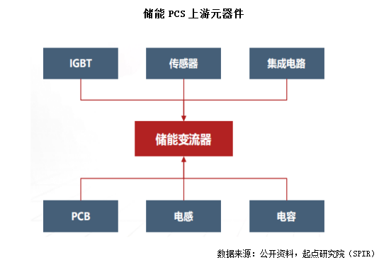 儲能PCS的上游主要是電子元器件,其中IGBT(絕緣柵雙極型晶體管)是核心部件,IGBT的性能決定了儲能PCS的性能。在儲能PCS中,材料成本占比約93%,其中占比最高的是結構件(26.7%),其次是電感(13.8%)和半導體元器件(11.4%)。