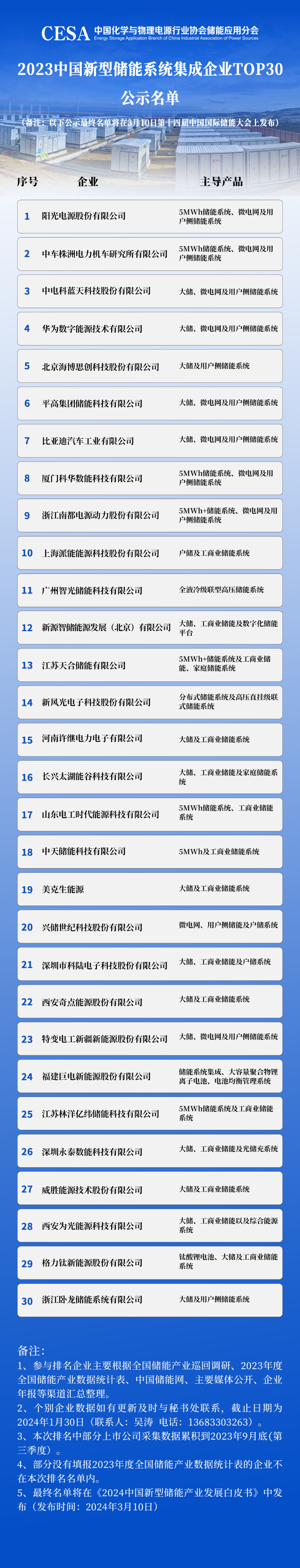本次儲能產(chǎn)業(yè)鏈百強企業(yè)評選活動針對的對象主要是 CESA 儲能應(yīng)用分會廣大會員企業(yè)和與儲能業(yè)務(wù)緊密相關(guān)的上市公司,評價數(shù)據(jù)以2023年為準(zhǔn),主要通過協(xié)會實地走訪調(diào)研、會員企業(yè)年度數(shù)據(jù)申報、媒體披露和上市公司年報等多個渠道,最終形成2023中國新型儲能鋰離子電池企業(yè)TOP20、2023中國新型儲能系統(tǒng)集成企業(yè)TOP30、2023中國新型儲能PCS企業(yè)TOP30、2023中國新型儲能液流電池企業(yè)TOP30、2023中國工商業(yè)儲能企業(yè)TOP60、2023中國新型儲能BMS企業(yè)TOP10、2023中國新型儲能飛輪儲能企業(yè)TOP10、2023中國新型儲能溫控系統(tǒng)企業(yè)TOP20、2023中國新型儲能消防與安全企業(yè)TOP 20、2023中國新型儲能壓縮空氣儲能企業(yè)TOP10及2023中國新型儲能產(chǎn)業(yè)企業(yè)TOP100名單。