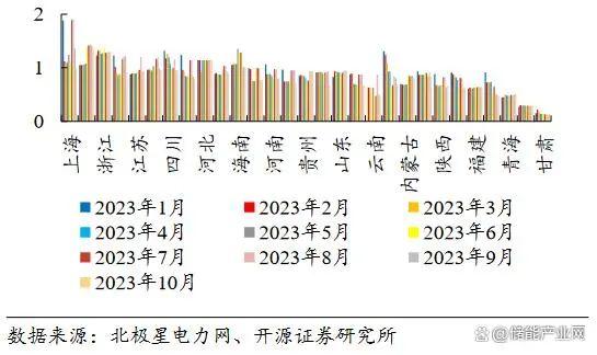 圖:2023年起國內(nèi)峰谷電價(jià)差呈拉大趨勢(shì)