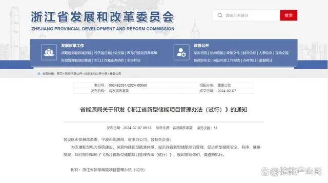 2月7日,浙江省能源局印發(fā)《浙江省新型儲(chǔ)能項(xiàng)目管理辦法(試行)》(以下簡稱《管理辦法》),文件為規(guī)范浙江省新型儲(chǔ)能項(xiàng)目管理,促進(jìn)新型儲(chǔ)能安全、有序、健康發(fā)展。