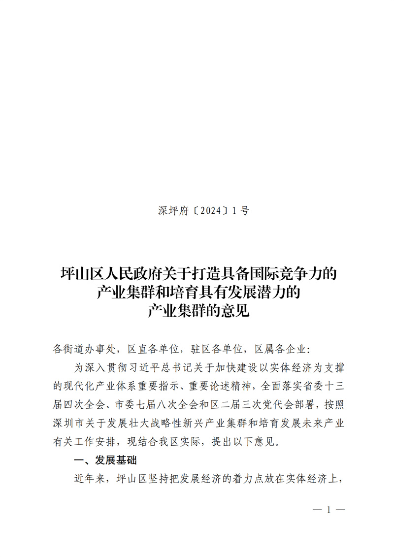 為深入貫徹習近平總書記關(guān)于加快建設(shè)以實體經(jīng)濟為支撐的現(xiàn)代化產(chǎn)業(yè)體系重要指示、重要論述精神,全面落實省委十三屆四次全會、市委七屆八次全會和區(qū)二屆三次黨代會部署,按照深圳市關(guān)于發(fā)展壯大戰(zhàn)略性新興產(chǎn)業(yè)集群和培育發(fā)展未來產(chǎn)業(yè)有關(guān)工作安排,現(xiàn)結(jié)合我區(qū)實際,提出以下意見(詳見附件)。