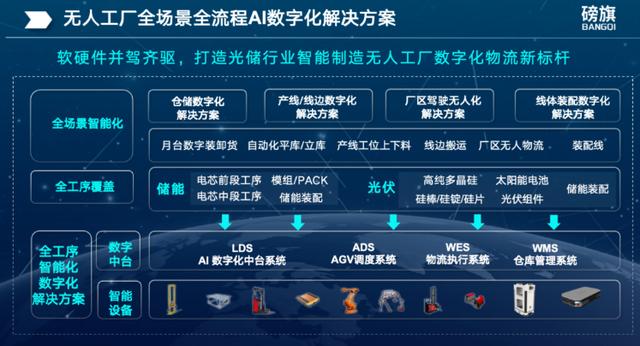 在此靠山下,磅旗科技踴躍摸索創(chuàng)新,使用構(gòu)建無人工場AI數(shù)字化,打造了自立可控的“軟件+硬件+數(shù)據(jù)+算法”云管端邊一體化處理方案,推出多品類AGV/機(jī)械人夾雜調(diào)理系統(tǒng)ADS、企業(yè)級無人工場數(shù)字中臺系統(tǒng)LDS,可能助力各AGV實(shí)現(xiàn)數(shù)據(jù)互通、協(xié)同功課,買通各工序過程的系統(tǒng)卡點(diǎn)和設(shè)施盲點(diǎn),賦能儲能產(chǎn)業(yè)智能制作數(shù)字化周全晉級。