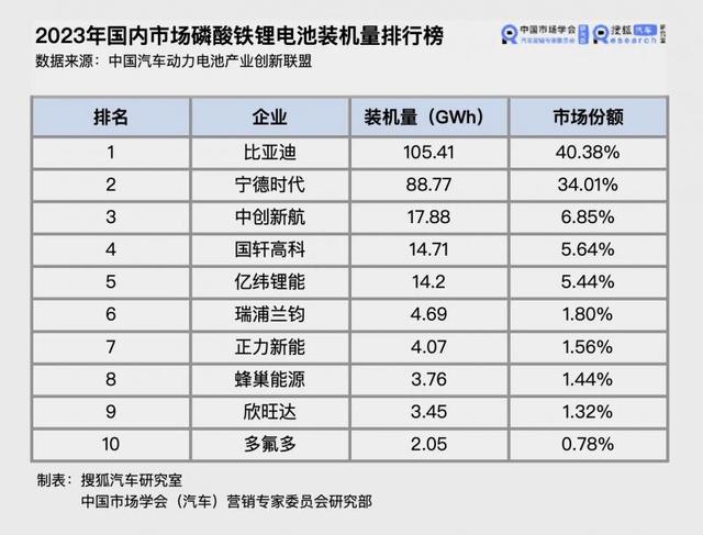 在動力電池領域、特別是磷酸鐵鋰電池領域,寧德時代面對著來自比亞迪強有力的挑戰(zhàn)。中國汽車動力電池產業(yè)創(chuàng)新聯盟公布的數據顯示,2023年比亞迪磷酸鐵鋰動力電池的裝機量已經超過寧德時代,拿下40%以上的市場份額。