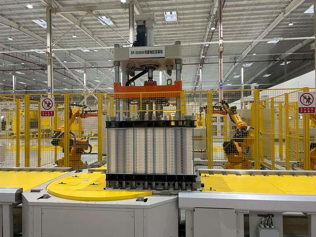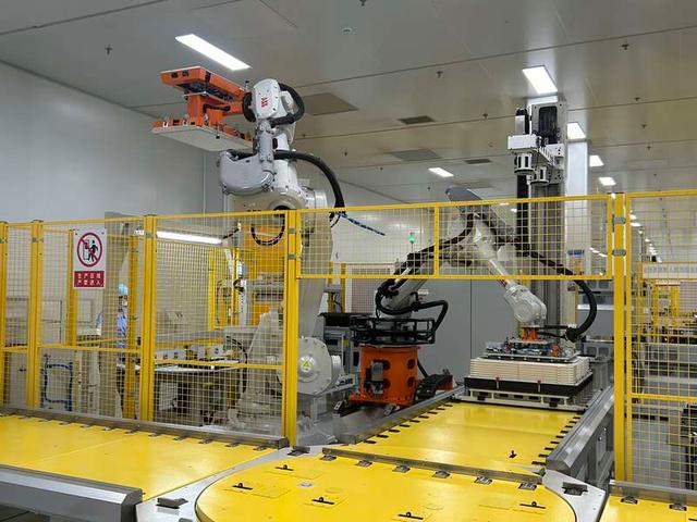 緯景儲能珠海“超G工廠”生產(chǎn)線上的機械手臂正在工作。中青報·中青網(wǎng)見習記者 賈驥業(yè)/攝