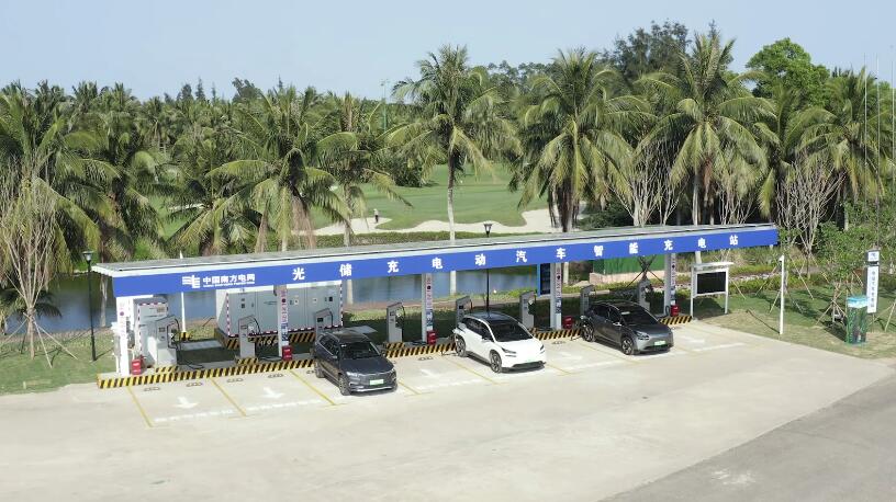 2023年3月,南網(wǎng)儲(chǔ)能建成投產(chǎn)海南省瓊海市博鰲鎮(zhèn)東嶼島首座光儲(chǔ)充電動(dòng)汽車(chē)智能充電站,項(xiàng)目采用“數(shù)字化+智能化”方式運(yùn)營(yíng),光儲(chǔ)充電站白天利用光伏發(fā)電,支撐充電樁充電,同時(shí)儲(chǔ)能吸收光伏裕余電力或谷電,在站內(nèi)用電高峰時(shí)向充電樁送電協(xié)助支撐負(fù)荷,實(shí)現(xiàn)削峰填谷、增加新能源消納、極速充電等多種功能,打造“零碳”微網(wǎng)示范應(yīng)用。