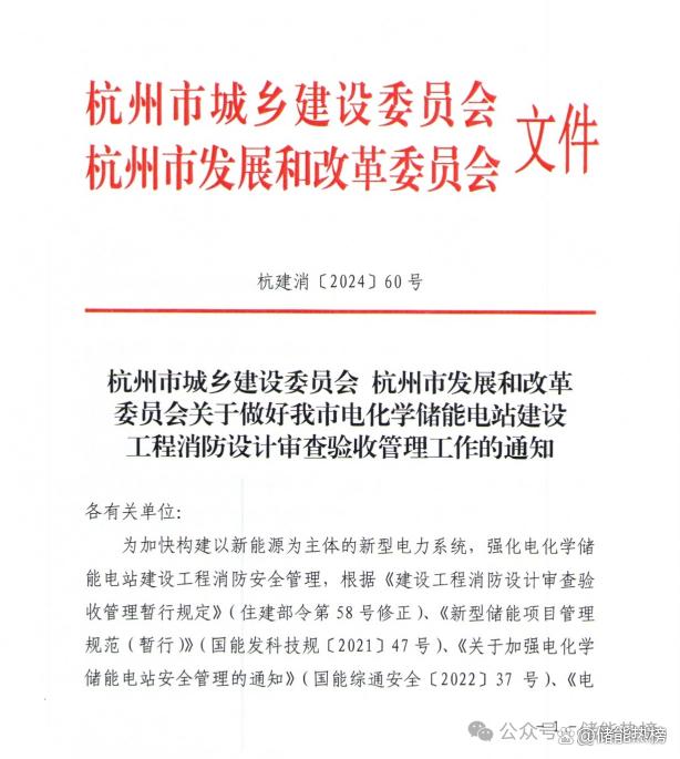 就在上個月,杭州兩部門也聯(lián)合發(fā)布了《關于做好我市電化學儲能電站建設工程消防設計審查驗收管理工作的通知》,整個浙江省的儲能消防驗收都在逐步收緊,這一動向值得產業(yè)人士重視。