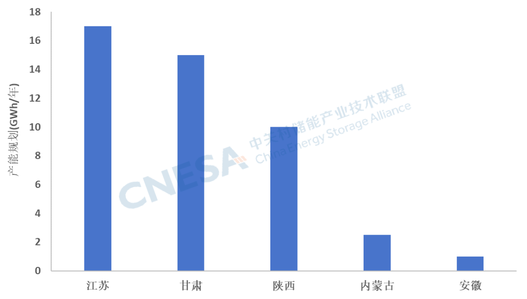 本月,包括全釩液流電池、鈉離子電池和鋅溴液流電池在內(nèi)的非鋰技術(shù),新增產(chǎn)能規(guī)模高達(dá)38.5GWh,其中鈉離子電池產(chǎn)能規(guī)劃達(dá)到了36GWh,占比93.5%。