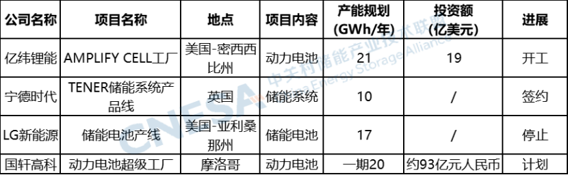 此外,本月,億緯鋰能、寧德時(shí)代、國(guó)軒高科等國(guó)內(nèi)頭部電池企業(yè)在海外的產(chǎn)能布局如火如荼進(jìn)行中,相繼宣布了其海外電池和儲(chǔ)能系統(tǒng)的規(guī)劃情況。