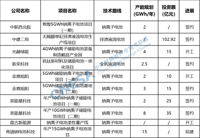 表 非鋰電池產(chǎn)能項(xiàng)目