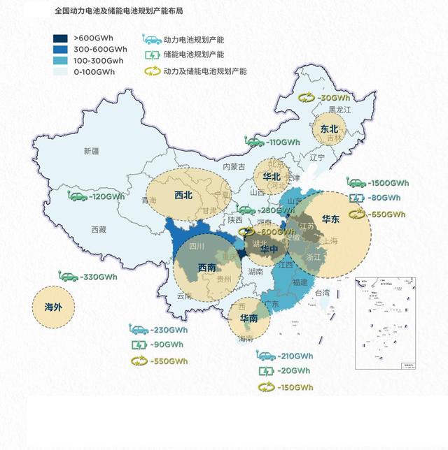 全國動(dòng)力電池及儲(chǔ)能電池規(guī)劃產(chǎn)能布局