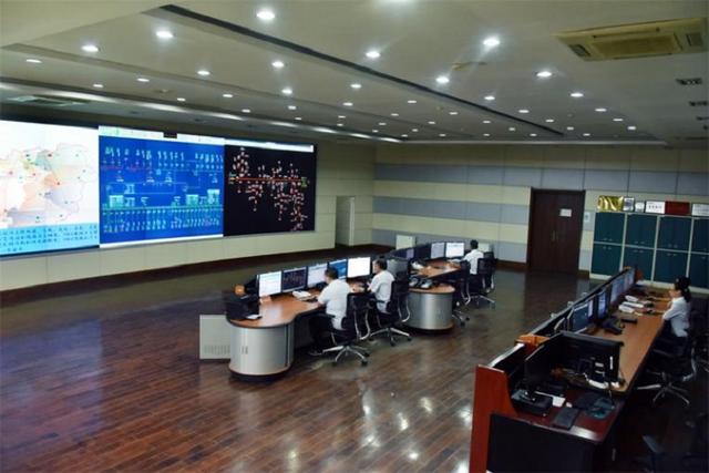 國網(wǎng)山東威海供電公司員工在調(diào)控中心觀察電網(wǎng)負荷情況,保障可靠供電。