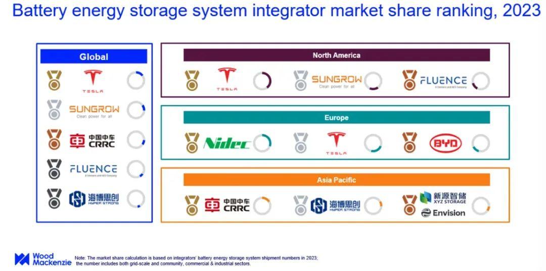 目前中國(guó)儲(chǔ)能裝機(jī)量最高,幾乎占到全球的近一半,畢竟是電力系統(tǒng)最發(fā)達(dá)的國(guó)家,但是量大沒(méi)用,國(guó)內(nèi)業(yè)務(wù)其實(shí)不怎么賺錢,一個(gè)是聯(lián)動(dòng)壓價(jià),光伏配儲(chǔ)能,光伏低迷,儲(chǔ)能預(yù)算跟光伏成本聯(lián)動(dòng),集成系統(tǒng)就不賺錢,因此電芯也別指望賺錢,而集成系統(tǒng)的集中度較低,有很多國(guó)企參與競(jìng)爭(zhēng),比如中車株洲是目前市占率第一,這種情況下,面向國(guó)內(nèi)的集成系統(tǒng)變成了差生意,跟特斯拉形成劇烈的對(duì)比。