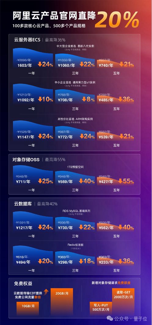 其中,云服務(wù)器ECS最高降36%,對象存儲(chǔ)OSS最高降55%,云數(shù)據(jù)庫RDS最高降40%。