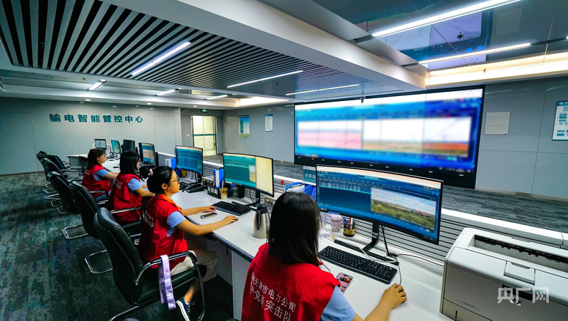 國(guó)網(wǎng)天津高壓公司工作人員在輸電管控中心內(nèi)開展保電監(jiān)測(cè)(央廣網(wǎng)記者 褚夫晴 攝)