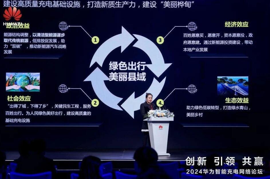 吉林省源達新能源有限公司總經(jīng)理劉丹丹發(fā)表了主題演講,探討了“構(gòu)建縣域高質(zhì)量充電基礎設施,打造新質(zhì)生產(chǎn)力,助力新能源汽車下鄉(xiāng)”的重要性。
