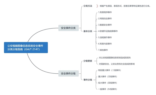 標(biāo)準(zhǔn)主要內(nèi)容:該標(biāo)準(zhǔn)內(nèi)容主要包括安全事件分類(lèi)、安全事件分級(jí)等兩大類(lèi)。同時(shí),標(biāo)準(zhǔn)還闡述了公安視頻圖像信息系統(tǒng)安全事件分類(lèi)、基本分類(lèi)和安全事件分級(jí)要素、事件分級(jí)等內(nèi)容。詳情如圖: