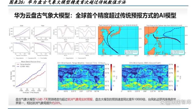 華為盤古氣象大模型精度首次超過傳統(tǒng)數(shù)值方法,速度提升 10000 倍以上。華為云發(fā)布 的盤古氣象大模型 1 小時(shí)-7 天預(yù)測精度均高于傳統(tǒng)數(shù)值方法,同時(shí)預(yù)測速度提升 10000 倍,能夠提供秒級的全球氣象預(yù)報(bào)(傳統(tǒng)數(shù)值預(yù)測方法無法做到),包括位勢、濕度、風(fēng) 速、溫度、海平面氣壓等。同時(shí),盤古氣象大模型在一張 V100 顯卡上,只需要 1.4 秒就 能完成 24 小時(shí)的全球氣象預(yù)報(bào)。