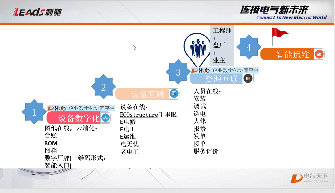 采訪中,令永卓感慨道:“我已經(jīng)服務(wù)于電氣行業(yè)25年,很榮幸作為參與者一路見(jiàn)證電氣行業(yè)由傳統(tǒng)走向今天的智能化,這些離不開(kāi)智能制造近年來(lái)的大力推動(dòng)。當(dāng)前企業(yè)紛紛將其納入發(fā)展的戰(zhàn)略目標(biāo),利馳也不例外,不斷創(chuàng)新研發(fā),先后推出了工業(yè)電氣一站式工作平臺(tái)——電氣天下和D-Hub企業(yè)數(shù)字化協(xié)同平臺(tái),幫助電力裝備制造行業(yè)智造升級(jí)。” 據(jù)了解,電氣天下針對(duì)個(gè)人用戶(hù)開(kāi)放服務(wù),提供海量免費(fèi)工業(yè)設(shè)計(jì)軟件、選型數(shù)據(jù)及服務(wù)、專(zhuān)業(yè)文獻(xiàn)等資源,幫助電氣行業(yè)上下游實(shí)現(xiàn)電氣的選型、圖紙、樣本資料、軟件下載,涵蓋電氣指數(shù)、電氣智庫(kù)知識(shí)分享一體化與一站式的服務(wù)。而把眾多工業(yè)軟件集成到一個(gè)云端數(shù)據(jù)庫(kù),一個(gè)統(tǒng)一的數(shù)字化協(xié)同平臺(tái)——D-Hub,則成功地打通了選型、報(bào)價(jià)、設(shè)計(jì)、工藝、制造、供應(yīng)鏈的數(shù)據(jù),使得企業(yè)的數(shù)據(jù)資產(chǎn)可以跨部門(mén)、跨企業(yè)的共享和復(fù)用,并讓數(shù)據(jù)在流動(dòng)中不斷增值。目前D-hub已覆蓋多種模板,建立了以3D元件為核心的覆蓋配電、自動(dòng)化行業(yè)1000多個(gè)品牌、3萬(wàn)多個(gè)系列、2.5億多個(gè)電氣及自動(dòng)化元件數(shù)據(jù)庫(kù)。令永卓直言:“D-Hub的功能遠(yuǎn)不止此,利馳已經(jīng)在D-Hub上開(kāi)始發(fā)力,發(fā)展數(shù)據(jù)可視化技術(shù),進(jìn)而實(shí)現(xiàn)設(shè)備互聯(lián)、產(chǎn)線互聯(lián),以及智能調(diào)度,助力電力裝備業(yè)的設(shè)計(jì)、制造的全流程數(shù)字化。并且,未來(lái)D-Hub將帶來(lái)更多可能性,實(shí)現(xiàn)設(shè)備數(shù)字化,進(jìn)而將設(shè)備資產(chǎn)與維修工程師和設(shè)備生產(chǎn)商連接起來(lái),實(shí)現(xiàn)資源互聯(lián)和設(shè)備在線,最終實(shí)現(xiàn)智能運(yùn)維,更好地服務(wù)電力電氣行業(yè)。”