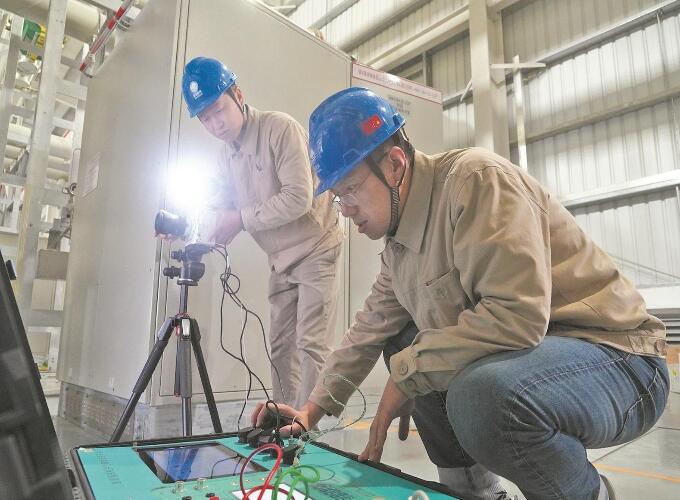 4月8日9時(shí),在江蘇±800千伏姑蘇換流站內(nèi),國(guó)網(wǎng)江蘇超高壓公司檢修人員準(zhǔn)備對(duì)可控自恢復(fù)效能裝置內(nèi)部的77千伏快速機(jī)械斷路器開展機(jī)械特性試驗(yàn)。