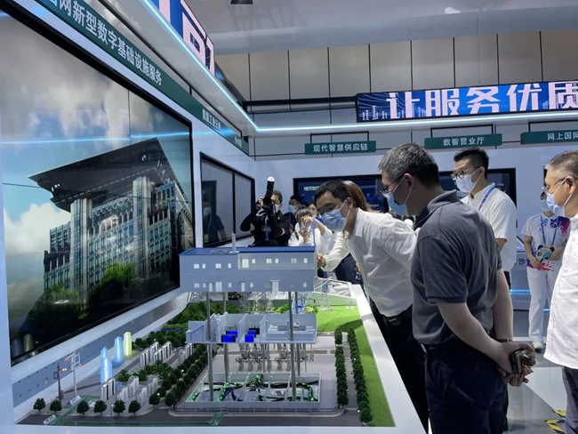 國網(wǎng)信通產(chǎn)業(yè)集團(tuán)工作人員介紹國網(wǎng)新型數(shù)字基礎(chǔ)設(shè)施服務(wù)。