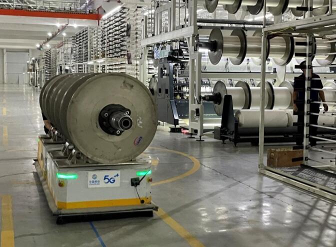 5G+AGV自動接單、無人搬運、自動運輸,助力紡織工廠高效不間斷生產。