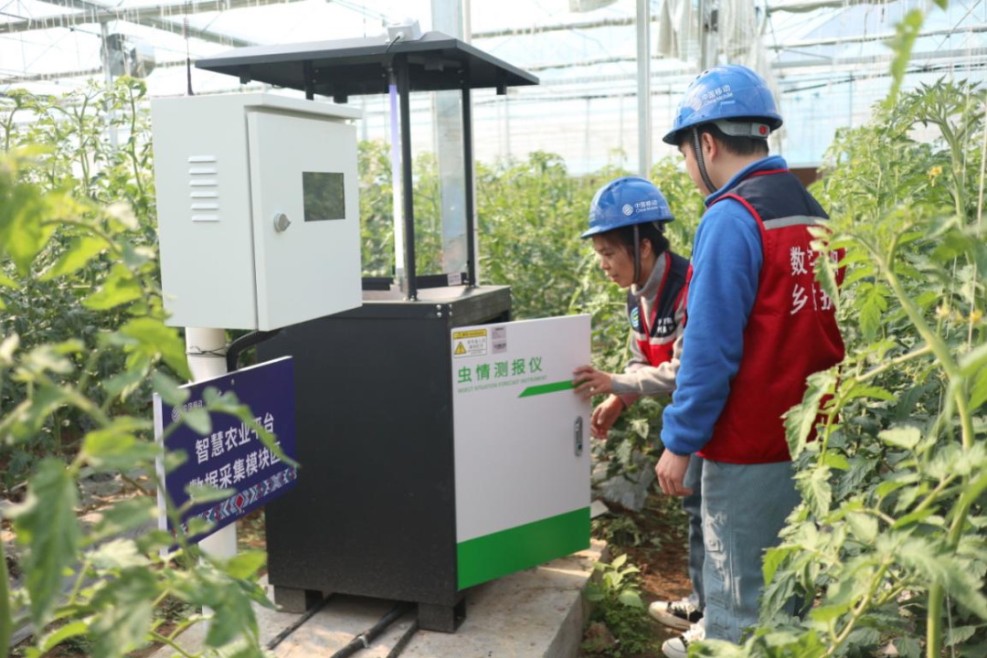 移動(dòng)技術(shù)人員調(diào)測(cè)蔬菜大棚的蟲情傳感設(shè)備。
