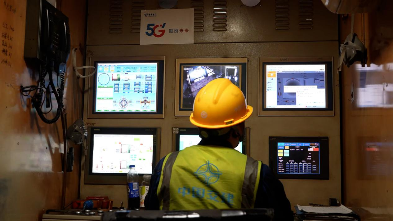 在掘進(jìn)機(jī)控制室,建設(shè)者們可以借助信息回傳等技術(shù)“一人掌機(jī)”“一網(wǎng)操控”