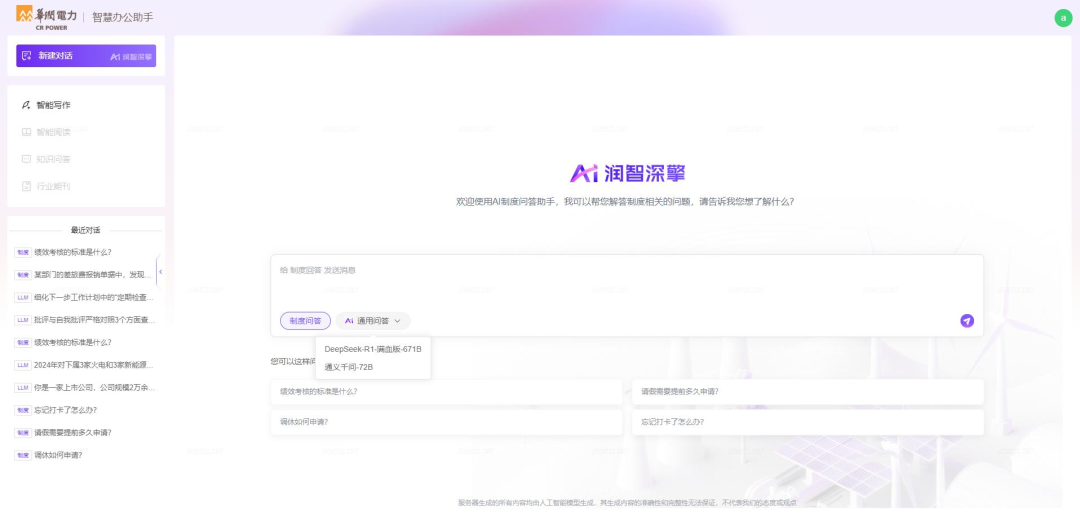 華潤電力正在快速推進智慧辦公助手建設,計劃今年上半年完成智能寫作、行業(yè)期刊等模塊建設。