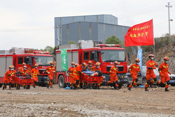 本次演練模擬背景是受強(qiáng)降雨影響,山體水分飽和,突發(fā)山體崩塌和滑坡地質(zhì)災(zāi)害險情,造成房屋被埋、人員被困情景。上午10點30分,應(yīng)急供電、現(xiàn)場搜救、專家勘察、救助傷員、衛(wèi)生消毒……現(xiàn)場的每支隊伍各司其職,相互配合,讓應(yīng)急演練有序地開展進(jìn)行。