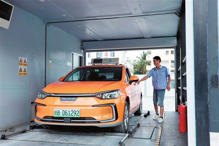 在南邊海新能源汽車換電站,出租車司機(jī)剛給車換完電。 記者 黃世烽 攝