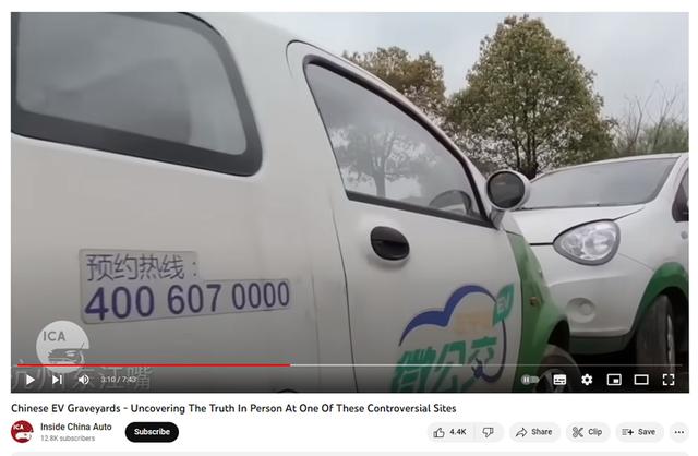 2017年12月26日起,浙江杭州、寧波、溫州三地正式啟用新能源汽車專用號牌。另一段被廣泛傳播的視頻來自YouTube用戶SerpentZA,聲稱“數(shù)十萬輛電動汽車被丟棄在杭州田間”,意在唱衰中國新能源汽車市場。專注于中國汽車市場的網(wǎng)絡媒體項目Inside China Auto實地走訪了原視頻中提到的地點,發(fā)現(xiàn)這些電動汽車并不是新車,且只有幾百輛,其中大多有五到六年的車齡,使用過很多次,車內外有售后配件、駕乘留下的垃圾和其他磨損痕跡。有的車外部貼有“微公交”等共享汽車品牌字樣,已經被市場淘汰。