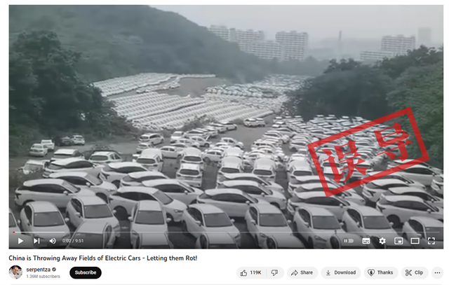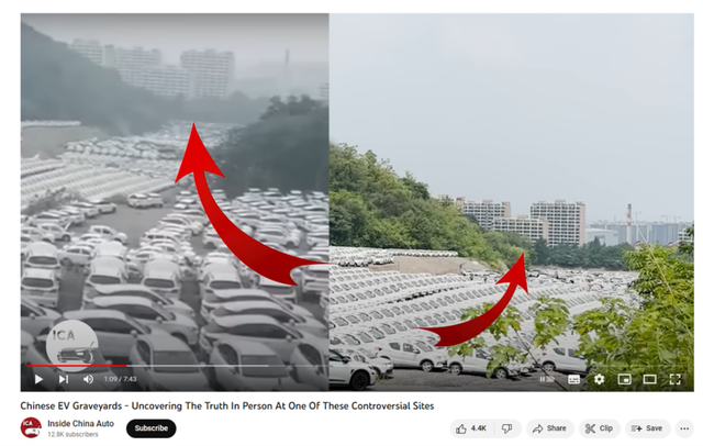 近段時間,推特、Youtube等社交平臺上廣泛流傳說法稱,“中國對電動汽車投資過度”“中國正在丟棄大量汽車,任其腐爛”、“浪費”。有關說法通常配有圖片或視頻,顯示在雜草叢中停放著上百輛汽車。