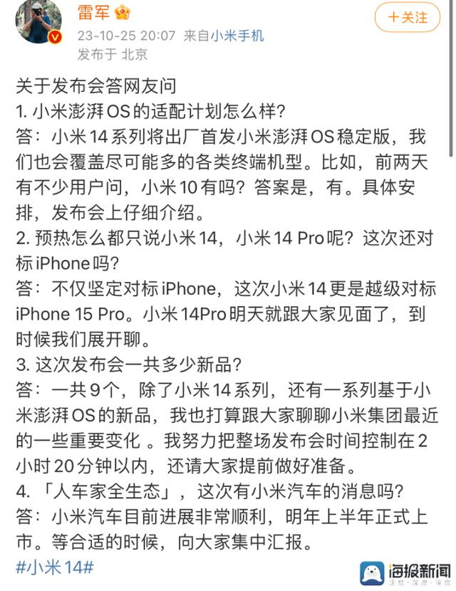 雷軍在社交平臺答網(wǎng)友問